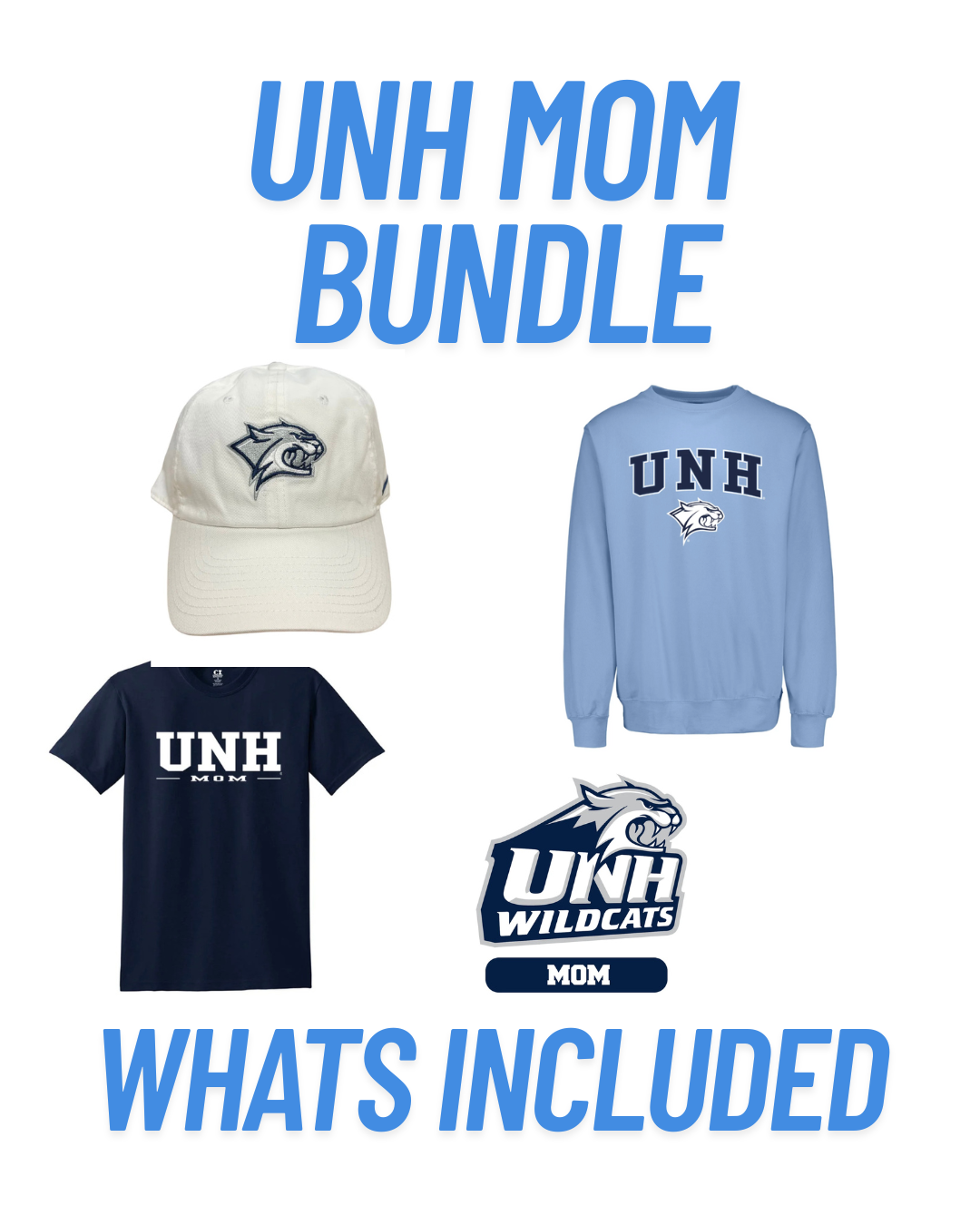 Elevate your Wildcat pride with the UNH Mom Bundle: a thoughtfully curated collection designed especially for the proud UNH mom. This bundle features a stylish, ultra-comfortable crewneck paired with a versatile hat, an eye-catching decal, and a classic shirt. Each piece is crafted with premium materials and authentic UNH detailing, ensuring you stay comfortable and chic whether you’re cheering at the game or running daily errands. Wear your pride boldly with every piece in this exclusive bundle!